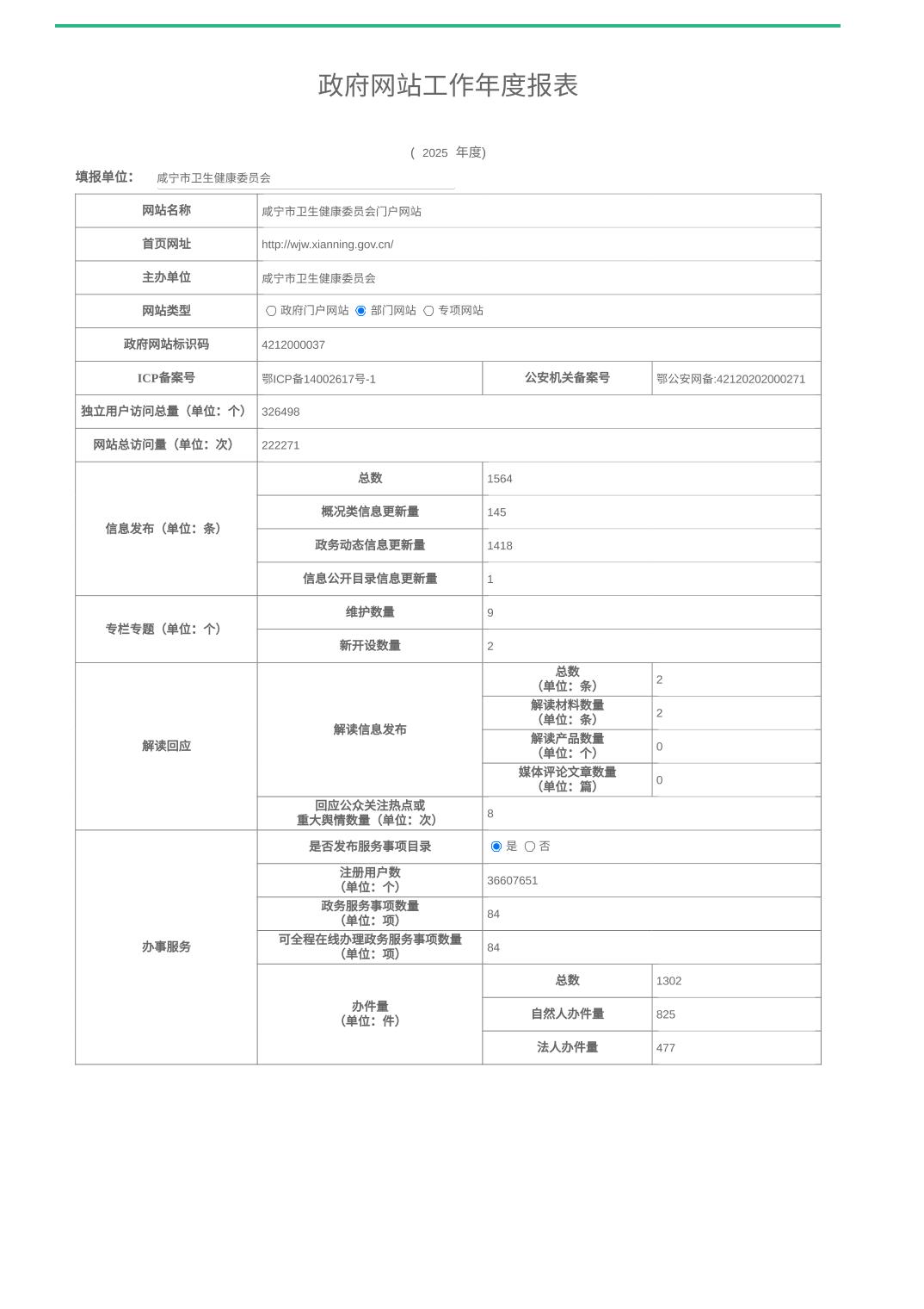 政府网站年度工作报表(市卫健委2025年)